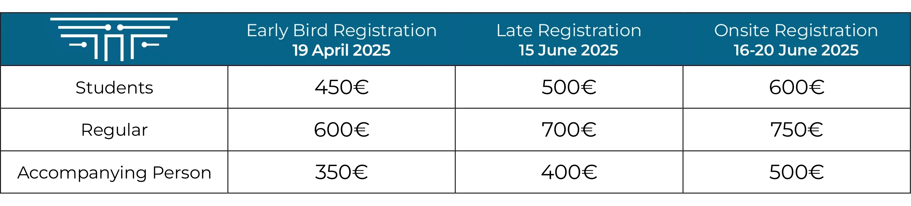 Early bird registration: From 16 january to 19 april 2025